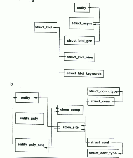 Table I summarizes the category groups, their associated individual categories and their definitions as found in the mmCIF dictionary version 0.8.02 dated March 18, 1996. This comprehensive hierarchy of categories follows closely the progress of the experiment and the subsequent structure description.